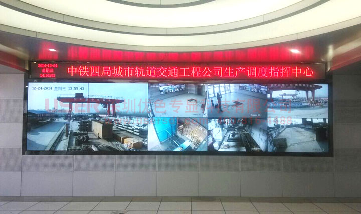 項目介紹(shào):采用46寸(cùn)2x5組合,物理(lǐ)拚縫6.7mm,鋁合金支架安裝。