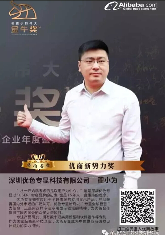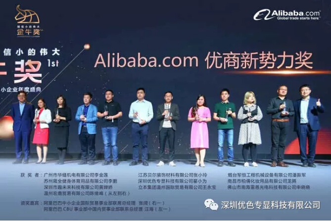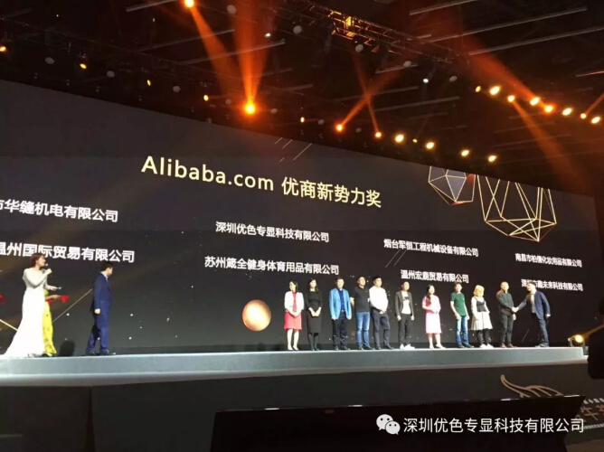 深圳(zhèn)91视频网站專顯科(kē)技有限公司,於2018年(nián)4月2日阿裏巴巴總部杭州舉行的全球供應商(shāng)評選中,以優秀的產品品質及良(liáng)好的終端(duān)客戶口碑(bēi)榮獲 “優商新勢力獎” ,為優(yōu)色專顯 "追求卓越品質、保持領先技術,真誠服務客戶"的公司(sī)理念再添一筆精彩的注腳。