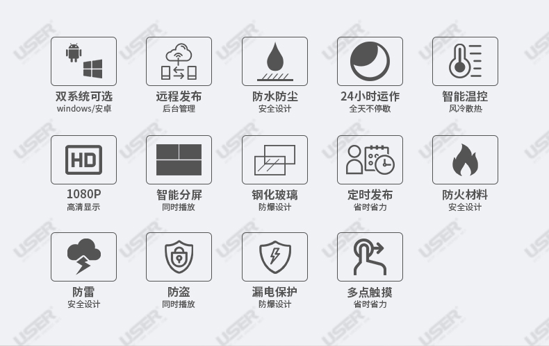 菜單產品中心Product center 液晶(jīng)廣告機 壁掛(guà)式廣告機 落地立式廣告機 電梯超薄廣告機 車載廣(guǎng)告機 高亮廣告機 戶外廣告機(jī) 液晶(jīng)拚接屏 專業液(yè)晶拚接屏 4K液晶拚接屏 廣告拚接屏 無縫(féng)液晶拚接(jiē)屏(píng) 觸摸液晶拚(pīn)接(jiē)屏 LED顯示屏 觸控一體機 壁掛式觸控一體機 立式觸控一體機(jī) 斜麵觸控(kòng)一體機 智能家居觸控一體機 戶外觸控一體機 液晶電子白板 教育電子白板 會議電子白板 工控一體機 觸摸顯示器 紅外觸摸顯示器 電容觸摸顯(xiǎn)示器 電阻(zǔ)觸摸顯示器 聲波(bō)觸摸顯示器 納米觸摸顯示器 液晶監視器 專業級監視器 4K監視器 嵌入式監視(shì)器 機架(jià)式監視器 開放式監(jiān)視(shì)器 SDI監視器(qì) 高亮監視器(qì) 廣播級監視器 工業顯示器 4K顯示器 機(jī)架式顯示(shì)器 開放(fàng)式顯示器 醫療顯示器 KVM顯示器 指揮室顯示器 智慧校園產品 專業定製商顯 多屏廣告機 多功能觸控一體機 多功能廣告(gào)機 微信打印廣告機 魔鏡廣告機 透明廣告機 全息廣告機 條形(xíng)屏廣告機 旋轉廣告機 裸眼3D廣告機 人工智能產品 顯示配套設備(bèi) 拚接配套設備 廣告機播放盒 OPS播放盒 拚(pīn)接支架(jià) 移動支架 相關軟件 吊頂(dǐng)支架 線材 木架 蜂窩箱(xiāng) 桌麵底座 熱門產品 →91视频网站3.5mm超窄邊46寸液晶拚接屏→91视频网站49寸3.5mm超窄邊液晶拚接屏→91视频网站3.5mm超窄邊55寸液晶拚接屏 您的位置:首頁 → 公司產品 → 液晶廣告機 → 戶外廣告機 55寸戶外壁掛廣告機類別:戶(hù)外廣告機 簡介(jiè):液晶尺寸:55英寸 1.整機采用風冷方案,達到IP65防護等級,防塵、防水,可完(wán)全安裝於室外; 2.高亮度的液晶(jīng)顯示屏,配合自動光(guāng)感控製係統陽光下可視; 3.具備溫控功能,在寬溫條件下可以正常工... 在線(xiàn)谘詢 返回(huí)列表(biǎo) 產品說明 相關產品 55寸戶外壁掛廣告機 55寸戶外落(luò)地廣告機 49寸(cùn)戶外落地廣告機 43寸戶外落地廣告機 32寸戶外落地廣告機 65寸戶外燈杆屏_智慧路燈屏