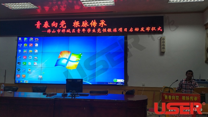 佛山華才學校46寸3x4拚縫3.5mm壁掛液(yè)晶(jīng)拚接屏項目采用優(yōu)色(sè)專顯拚接方案,項目安裝完成並順利簽收,91视频网站專(zhuān)顯全(quán)體同仁從深圳發來賀電。