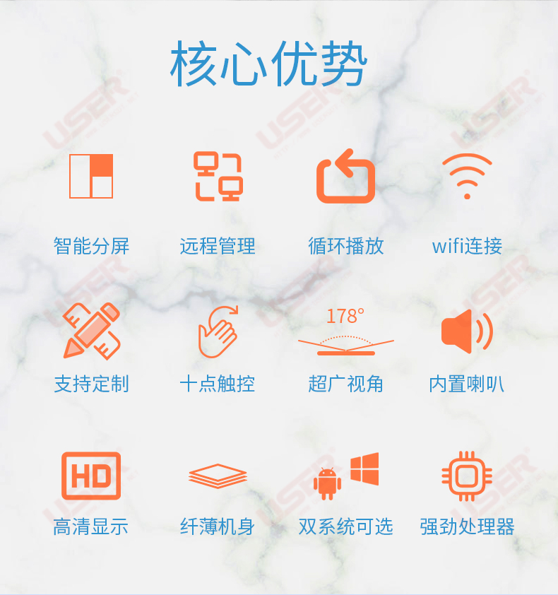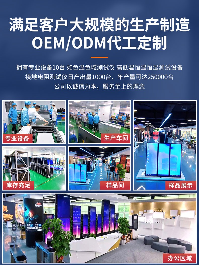 菜單產品(pǐn)中心Product center 液晶廣告機 壁掛式廣告機 落地立式廣告機 電梯超薄廣告機(jī) 車載(zǎi)廣告機 高亮廣告機 戶外廣告機 液晶拚接(jiē)屏 專業液晶(jīng)拚接屏 4K液(yè)晶(jīng)拚接屏 廣告拚接(jiē)屏 無縫液晶拚接屏 觸(chù)摸液晶拚(pīn)接屏 LED顯示(shì)屏 觸控一體機 壁掛式觸控一體機 立式觸控一體(tǐ)機 斜麵觸控一體(tǐ)機(jī) 智能家居觸控一體機 戶外觸控一體機(jī) 液晶電子白板 教育電子白板 會議電子白板 工控一體機 觸摸顯示器 紅外觸摸顯示器 電容(róng)觸摸(mō)顯示器 電阻(zǔ)觸摸顯示器 聲波觸摸顯示器 納米觸(chù)摸顯示器 液(yè)晶監視器 專業級監(jiān)視(shì)器 4K監視(shì)器 嵌入式監視器 機架式監視器 開放式監視器 SDI監視(shì)器(qì) 高亮(liàng)監視(shì)器 廣播級監視器 工(gōng)業顯示器 4K顯示器 機架式顯示器 開放式顯示器 醫療顯示器 KVM顯示器 指揮室顯示器 智慧校園產品 專業(yè)定製商顯 多屏廣告(gào)機 多功能觸控一體機 多功能廣告機 微信打印廣告機 魔鏡廣告機(jī) 透明廣告機 全息廣告(gào)機 條形屏廣告機 旋轉廣告機 裸眼3D廣告機 人工智能產品 顯示配套設備(bèi) 拚(pīn)接配套設備 廣告(gào)機(jī)播放盒 OPS播放盒 拚接支架 移動支架 相關軟件 吊頂支架 線材 木架 蜂窩箱 桌麵底座 熱門產(chǎn)品 →91视频网站3.5mm超窄(zhǎi)邊46寸(cùn)液晶拚接屏(píng)→91视频网站49寸3.5mm超窄邊液晶拚接屏→優(yōu)色3.5mm超窄(zhǎi)邊(biān)55寸液晶拚接屏 您的位置:首頁 → 公司產品 → 液晶廣告機 → 落地立式廣告機 50寸立式落(luò)地廣告機類別:落地(dì)立式廣告機 簡介:液晶尺寸 50英寸 液晶規(guī)格 全新原廠原包LED商用液晶麵板 分 辨 率 1920*1080 顯示(shì)麵積 1073.78*604mm 顯示比例 16:9 可視角度 89/89/89/89(左/右/上/下) 亮 度 350cd/m2 背光類型 ELED 響... 在(zài)線谘詢 返回列表 產品說明 相關(guān)產品 65寸落地立式廣告機 55寸立式廣告(gào)機 50寸立式落地廣告機 43寸立式落(luò)地廣告機 43寸46寸49寸55寸65寸86寸仿蘋果款立式廣告機 55寸超薄立(lì)式(shì)廣告機