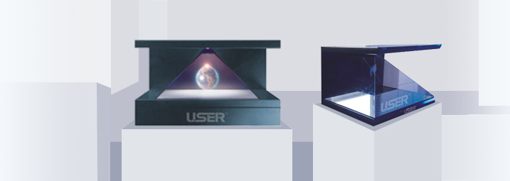 四個視頻發射器將光信號發射(shè)到這個錐體中的特殊棱(léng)鏡上,匯集到一起後形成(chéng)具有真實維度空間的立體影像, 形成空中幻象中間可結合實物,實現影像與(yǔ)實物的結合