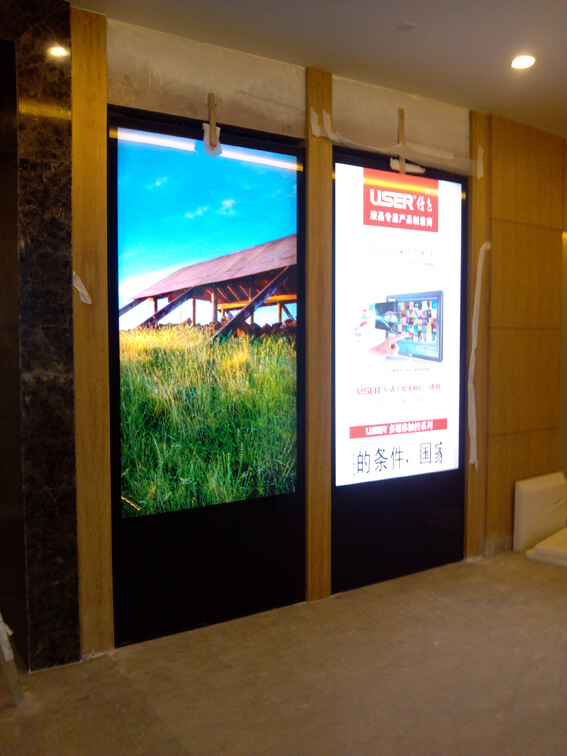 91视频网站立式82寸液晶廣告機應用廈門某集團大廈