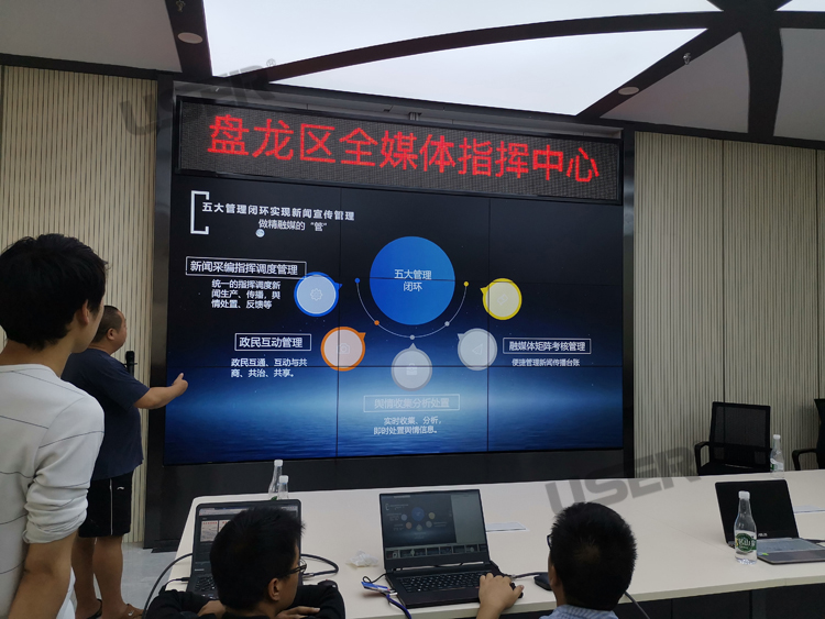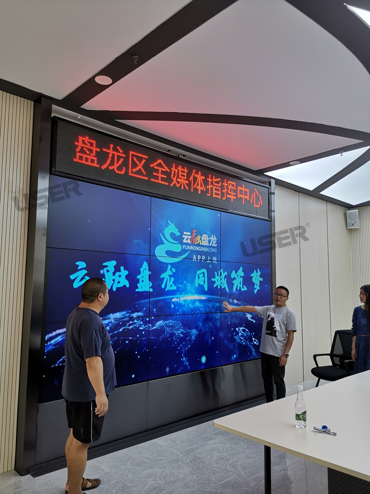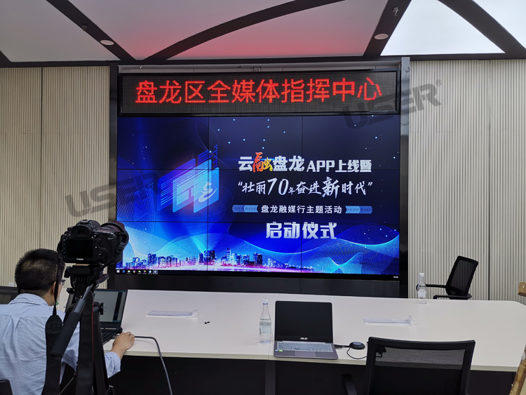 昆明市(shì)盤龍區融媒體中心55寸拚接屏(píng)項目(mù)竣工