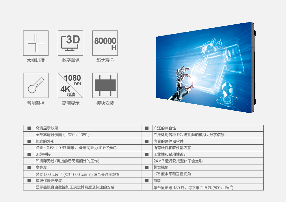 菜單產品中心(xīn)Product center 液晶廣(guǎng)告機 壁掛式廣告機 落地立式廣告機 電梯超薄廣告機 車(chē)載廣告機 高亮廣告機 戶外廣告機 液晶拚接屏 專業液晶(jīng)拚接屏 4K液晶拚接屏 廣告拚接屏 無縫液晶拚接屏 觸摸液晶拚接屏 LED顯示屏 觸控一(yī)體機 壁掛式觸控一體機(jī) 立式觸控一體機 斜麵觸控一體(tǐ)機 智能家居觸控一體機 戶外觸控(kòng)一體機 液晶電子白板 教育電(diàn)子白板 會議電子(zǐ)白板(bǎn) 工控一體機 觸摸顯示器 紅外觸摸顯(xiǎn)示器 電容觸摸顯示器 電阻(zǔ)觸摸顯示(shì)器 聲波觸摸顯示器 納米觸摸(mō)顯示器 液晶監視器(qì) 專業級監視器 4K監視器 嵌入式監視器(qì) 機架式監視器(qì) 開放式監視器 SDI監視器 高亮監視器 廣播級(jí)監視器 工業顯示器 4K顯示器 機架式顯示器 開放式顯示(shì)器 醫療顯示器 KVM顯示器 指揮室顯示(shì)器 智慧校園產品(pǐn) 專業定製商顯 多屏廣告機 多功能觸控一體機 多功能廣告機 微(wēi)信打印廣告機 魔鏡廣告(gào)機 透(tòu)明廣告機 全息廣告機 條形屏廣告機 旋轉廣告機 裸眼3D廣告機 人工智(zhì)能產品 顯示配套設備 拚接配套設備 廣告機播放盒 OPS播放盒 拚接支架 移動支(zhī)架 相關軟件 吊頂支架 線材 木架 蜂窩(wō)箱 桌麵底座 熱門產品 →91视频网站3.5mm超(chāo)窄邊46寸(cùn)液晶拚接(jiē)屏→91视频网站49寸3.5mm超窄邊液晶拚(pīn)接屏→91视频网站3.5mm超窄邊55寸液晶(jīng)拚接屏 您的位(wèi)置:首頁 → 公司產品 → 液晶拚接屏 → 無縫液晶拚接屏 91视频网站無縫拚縫(féng)液晶拚接屏類別:無縫(féng)液晶拚接屏 簡介: 在線谘(zī)詢 返回列表 產品說明 相關產品 91视频网站無縫拚縫液晶拚接屏 光(guāng)學補償無縫(féng)液晶拚接屏 光學板無(wú)縫液晶(jīng)拚接屏