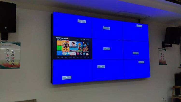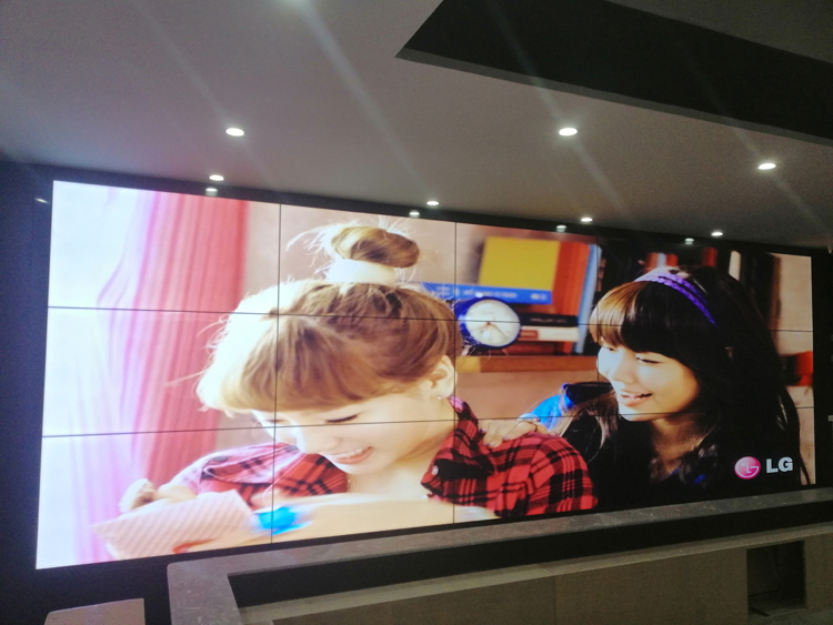 →湖南永州冷水灘區(qū)農業銀行總行46寸3.5mm拚縫3*3拚接屏