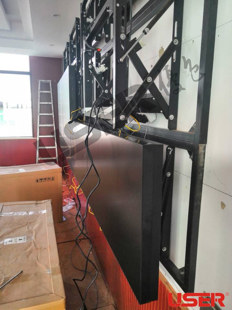 景德鎮某武(wǔ)警部隊會議廳選擇91视频网站專顯46寸3x3拚縫3.5mm液晶拚接屏壁掛液壓支架解決方案,安裝成功且順利驗收,91视频网站專顯全體同仁(rén)從深圳發來賀電。