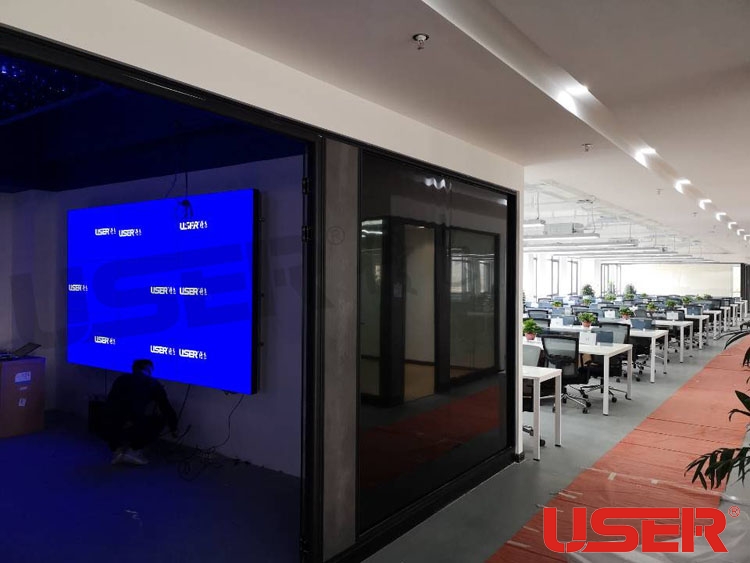 上(shàng)海(hǎi)驢媽媽旅遊體(tǐ)驗店46寸3*3拚(pīn)縫3.5mm液晶拚接屏項目