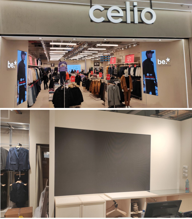 服裝連鎖門店LED大屏、吊裝圓環LED屏、條型LED顯示(shì)屏、貨(huò)架屏(píng)
