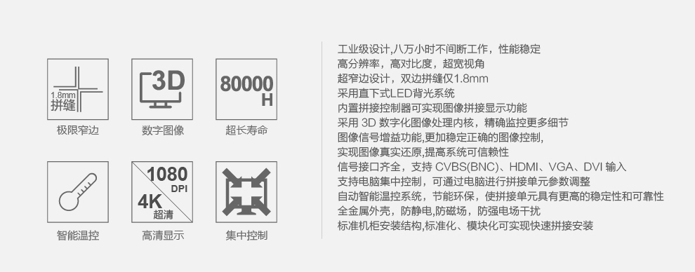 菜單產品中心Product center 液晶廣告機(jī) 壁掛式廣告機 落地立式廣告機 電梯超薄廣(guǎng)告(gào)機 車載廣告機 高亮廣告機 戶外廣告機 液晶拚接屏 專業液晶拚接屏 4K液晶拚接屏(píng) 廣告拚接屏 無縫液晶拚接屏 觸摸液晶(jīng)拚接屏 LED顯示屏 觸控一體機 壁掛式觸控一體機 立(lì)式觸(chù)控一體(tǐ)機 斜麵(miàn)觸控一體機 智能家居觸控一體機 戶外觸控(kòng)一體機 液晶電子白板 教育電子白板 會議(yì)電子白板 工控一體機 觸摸顯示器 紅外觸摸顯示器 電容觸(chù)摸顯示器 電阻觸摸顯示器 聲波觸摸顯示器 納米觸摸顯示器 液晶監視器 專業級(jí)監視器 4K監視器(qì) 嵌入(rù)式監視器 機架式監視器 開放式監視器 SDI監視器 高亮監視器 廣播級監視器 工業顯示器 4K顯示器(qì) 機架式顯示器 開放式顯示器 醫療顯示(shì)器 KVM顯示(shì)器 指揮室顯示器 智慧校園產品(pǐn) 專業定製商顯 多(duō)屏廣告機 多功能觸控(kòng)一體機 多功能廣告機 微信打印廣告機 魔鏡廣告機 透明廣告機(jī) 全息廣(guǎng)告機 條形屏廣告機 旋轉廣(guǎng)告機 裸眼(yǎn)3D廣告機 人(rén)工智能產(chǎn)品 顯示配套設備 拚(pīn)接配套設備 廣告機播放(fàng)盒 OPS播放盒 拚(pīn)接支架 移動支架 相關軟件 吊頂支架 線材 木架 蜂窩箱(xiāng) 桌麵底座 熱門產品(pǐn) →91视频网站3.5mm超窄(zhǎi)邊46寸液晶拚接屏→91视频网站49寸3.5mm超(chāo)窄邊液晶拚接屏→91视频网站3.5mm超窄邊55寸液晶拚接屏 您的位置:首頁 → 公司產品 → 液晶拚接屏 → 專業液晶拚接屏 91视频网站49寸1.8mm超窄邊(biān)液晶拚接牆類別:專業液(yè)晶(jīng)拚接屏 簡介:◆ 型號:US-PJ46** ◆類(lèi)型:三星/LG/BOE麵板 ◆亮度(dù):500-700cd/m2(可選) ◆超窄邊設計,拚縫1.8mm ◆ 在ISO9001嚴格的質量(liàng)控製體係下生產 ◆ 色彩均勻,圖像穩定(dìng),為拚接大畫麵定製功能 ... 在線(xiàn)谘詢 返回列表 產品說明 相關產品 91视频网站1.7mm超窄邊55寸液晶拚接屏 91视频网站49寸1.8mm超(chāo)窄邊液晶拚接牆 91视频网站(sè)49寸3.5mm超窄邊液晶拚接屏 91视频网站3.5mm超窄邊55寸液晶拚接屏 91视频网站3.5mm超窄邊46寸液晶拚接屏 91视频网站5.3mm超窄邊55寸液晶拚接屏