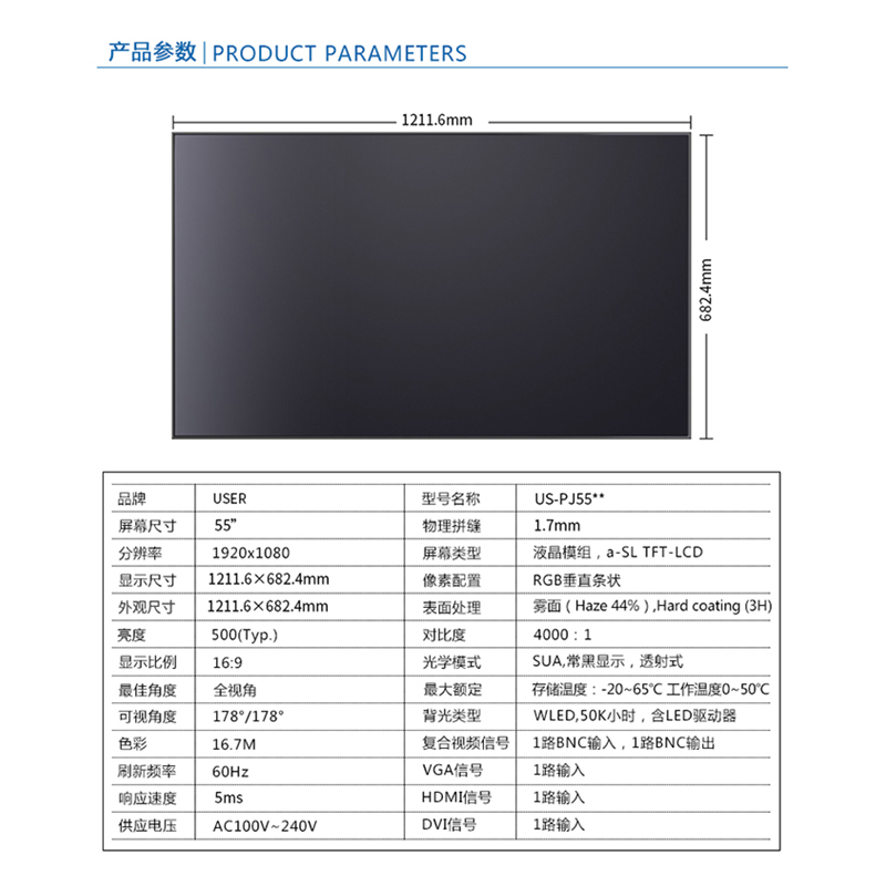 菜單產品中(zhōng)心Product center 液(yè)晶廣告機 壁(bì)掛式廣告機 落地(dì)立式廣告機 電梯超(chāo)薄廣(guǎng)告機 車載廣告機 高亮廣告機 戶外廣告(gào)機 液晶拚接屏(píng) 專業(yè)液晶拚(pīn)接(jiē)屏 4K液晶拚接(jiē)屏 廣告拚接屏 無縫液晶拚接屏 觸摸液晶拚接屏 LED顯示屏(píng) 觸控一體機 壁掛式觸控一體機 立式觸控一體機 斜麵觸控一(yī)體機 智能家居觸控一體機 戶外觸控一體機 液晶(jīng)電子白板 教育電子白板 會議(yì)電子白(bái)板 工控一體機 觸摸顯示器 紅外觸摸顯示器 電容觸摸顯示器 電阻觸摸顯示器(qì) 聲波觸摸顯示器(qì) 納米觸摸顯示器 液晶監視器 專業級監(jiān)視器 4K監視器 嵌入(rù)式監視器 機架(jià)式監視器 開放式監視器 SDI監(jiān)視器 高亮監視器(qì) 廣播級監視器 工業(yè)顯示器(qì) 4K顯示器 機(jī)架式顯示器 開放式顯示器 醫(yī)療顯示(shì)器 KVM顯示器 指揮室顯示器 智慧校園產(chǎn)品 專業定製商顯 多(duō)屏廣告機 多功能觸控一(yī)體機(jī) 多功能廣(guǎng)告機 微信打印廣告機(jī) 魔鏡廣告機(jī) 透明廣告機 全息廣告機 條形屏廣告機 旋轉廣告機 裸眼3D廣告機 人工智能產品 顯示(shì)配套設備 拚接配套設備 廣告機播放盒 OPS播放盒 拚(pīn)接支(zhī)架 移動支架 相關軟件 吊頂(dǐng)支架 線材 木架 蜂(fēng)窩箱 桌麵底(dǐ)座 熱門產品 →91视频网站(sè)3.5mm超(chāo)窄(zhǎi)邊46寸液晶拚(pīn)接屏→優(yōu)色49寸3.5mm超窄邊液晶(jīng)拚接屏→91视频网站3.5mm超窄邊55寸液晶拚接屏 您的位置:首頁 → 公司(sī)產品 → 液(yè)晶拚(pīn)接(jiē)屏 → 專業液(yè)晶拚(pīn)接屏 91视频网站1.7mm超窄(zhǎi)邊55寸液晶(jīng)拚接屏(píng)類別:專業液晶拚接屏 簡介:◆ 型號:US-PJ55** ◆類型:三(sān)星/LG/京東方(fāng)BOE麵板 ◆亮度:500-700cd/m2(可選) ◆超窄邊設計,拚縫1.7mm ◆ 在ISO9001嚴格的質量控製體(tǐ)係下生產 ◆ 色(sè)彩均勻,圖像穩定,為拚接(jiē)大(dà)畫麵定製... 在(zài)線谘詢 返回列表 產品說明(míng) 相關產品 91视频网站1.7mm超窄邊55寸(cùn)液(yè)晶拚接屏 91视频网站49寸(cùn)1.8mm超窄邊液晶(jīng)拚接牆 91视频网站49寸3.5mm超(chāo)窄(zhǎi)邊液晶拚(pīn)接屏 91视频网站3.5mm超窄邊55寸液晶拚接屏 91视频网站3.5mm超窄邊46寸液晶拚接屏 91视频网站5.3mm超窄(zhǎi)邊55寸液晶拚接屏