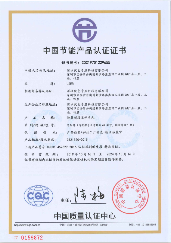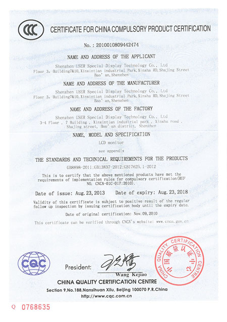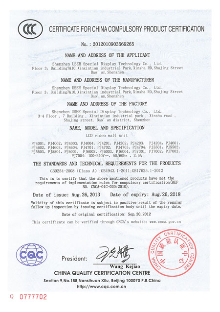 CCC認證(廣告觸控一體機(jī)英文證書)