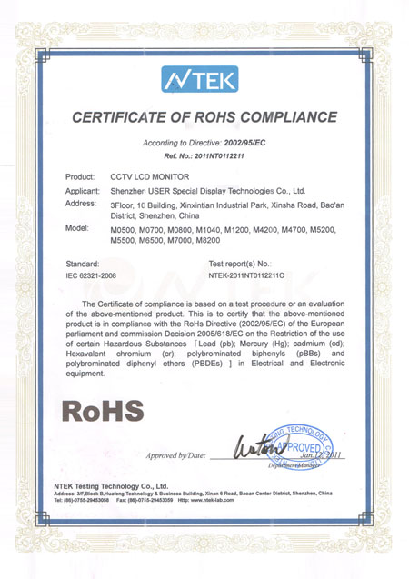 RoHS認(rèn)證歐盟認證(液晶監視器)