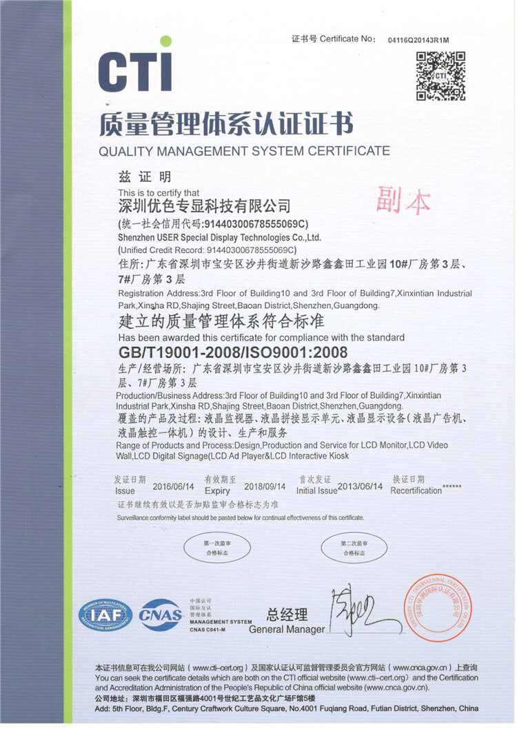 ISO9001:2008質量管理體(tǐ)係(xì)證書